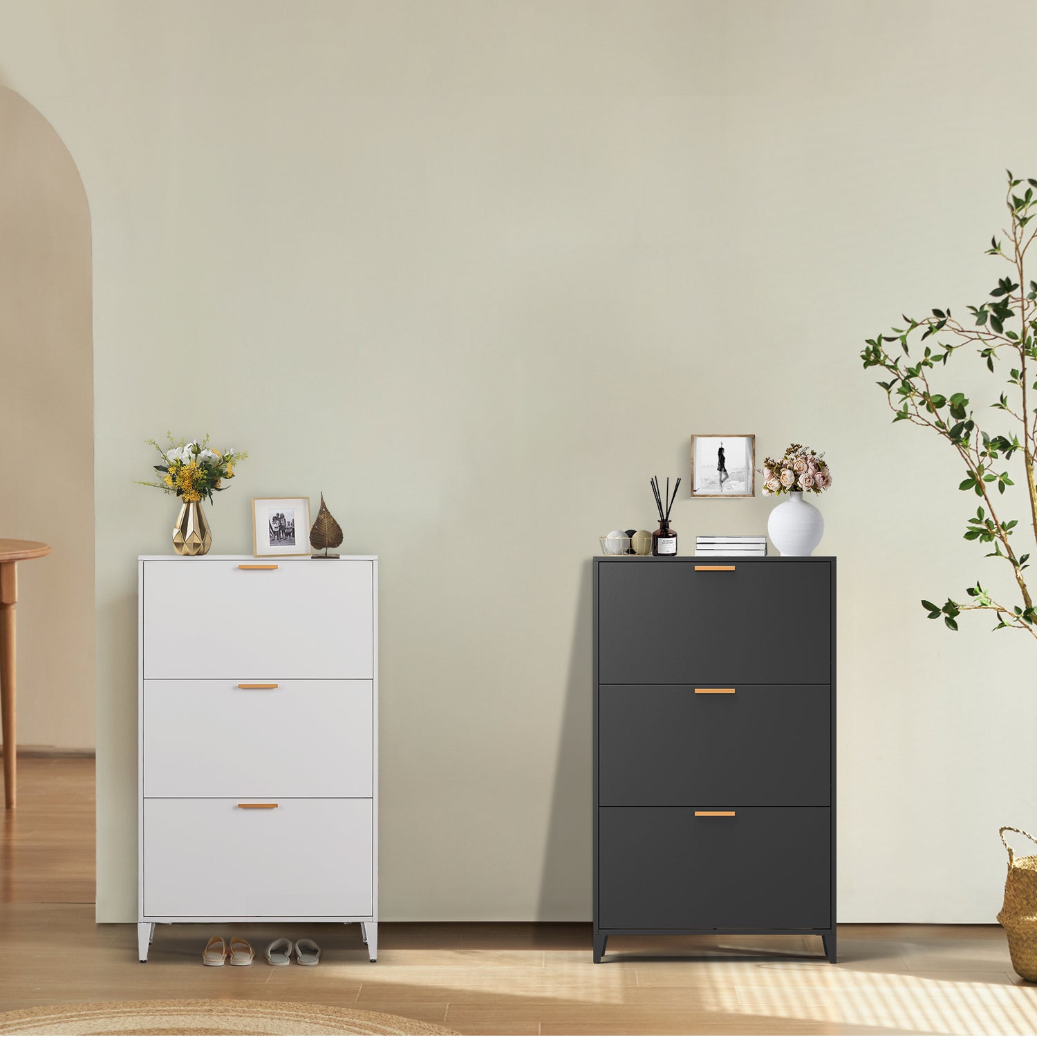 3 Drawer All Steel Shoe Cabinet, Freestanding Shoe Rack Storage Organizer with Flip Door, for Entryway, Hallway, Bedroom, White (Requires Assembly)