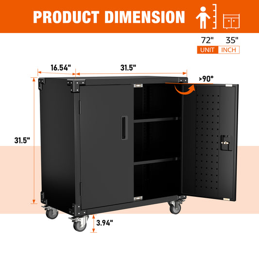 Metal Cabinet with Wheels,Black Rolling Storage Cabinet with Locking Doors and Adjustable Shelves,Small Metal Garage Storage Cabinet with Wheels for Home,Kitchen,Office,Warehouse(36”H)