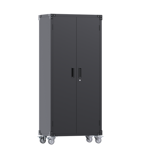 Metal Garage Storage Cabinet on Wheels, Double Handle Lock Steel Storage Cabinet with 2 Doors, 4 Shelves Adjustable Black, Assembly Required