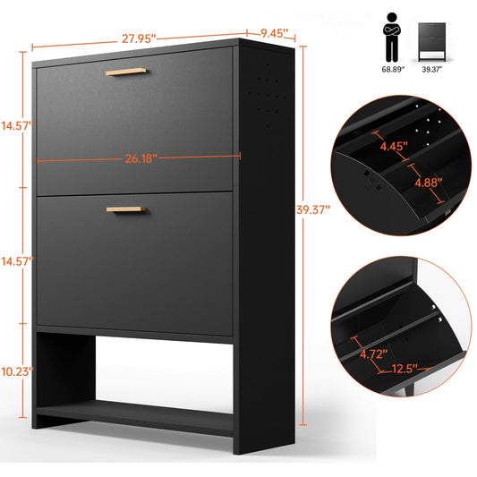 Metal Shoe Storage Cabinet with 2 Flip Drawers