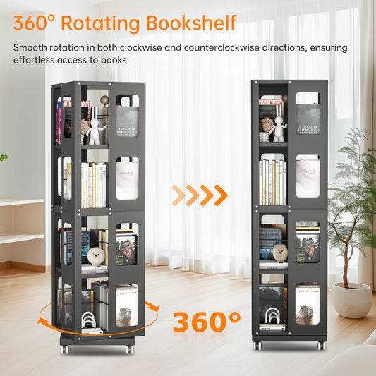 Silkight Book Shelf, 4 Tier All-Steel Rotating Bookshelf with 360° Wheels, Large Size Shelves Corner Book Shelf for Kids Rooms,Easy Assembly