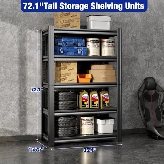72" H|35.4" W All-Metal Garage Shelving Unit and Storage-Easy Assembly Shelves 5-Tier Rack|Heavy-Duty Adjustable Shelf|Steel Waterproof Rust-Resistant Shelves for Industrial