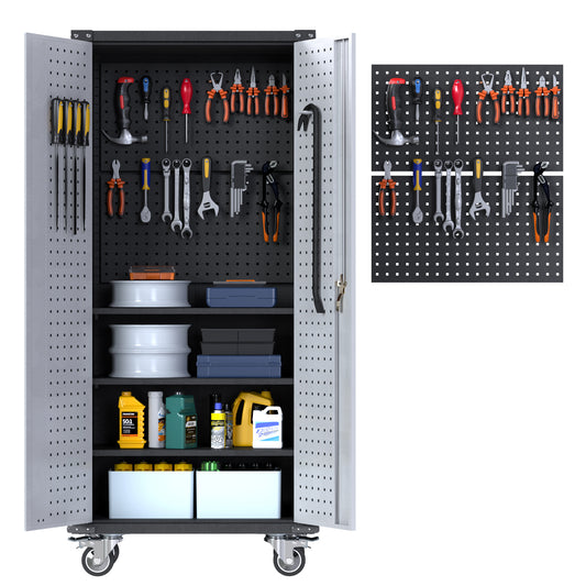 71'' Tall Metal Storage Cabinet with Wheels, Hanging Holes on the Door,Rolling Garage Storage Cabinet, Lockable Steel Tool Cabinet with Adjustable Shelve for Office, Basement, Pantry, Workshop