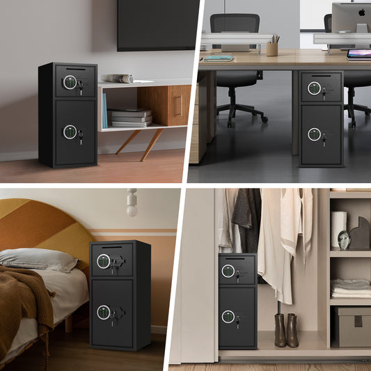 6.5 Cuft Large Fire Safe Home, with silent function and LED lights, numeric keypad home safe with deposit slot and dual alarm system, Anti-Theft Fire Safe Box for Home Office