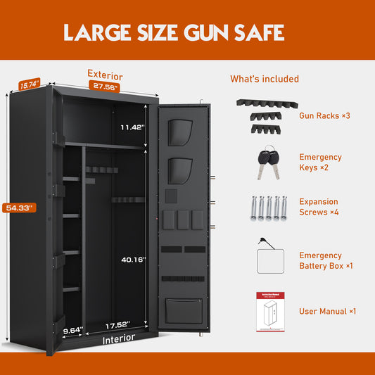 BM-AKMN-132W Biological Fingerprint Large Gun Safe with Adjustable Gun Rack, Gun Cabinet with Shelves for Home and Office