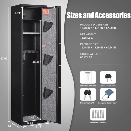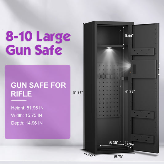BM- Biometic Gun Safe, 57" Quick Access 5-8 Fireproof Gun Safe , Fingerprint Gun Safe for with LED Light, Mute Function and Dual Alarm System