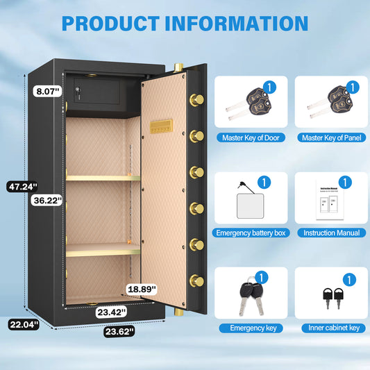 BM-K3-150D-Extra Large Safe Box, 17.6 Cubic Feet Heavy Duty Big Safe with Security Double Key Lock & Seperate Lock Box