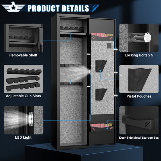 BM-G5-145W-5-6 Gun Safe, Qucik Access Gun cabinet with Removable Shelf and 3 Gun Racks