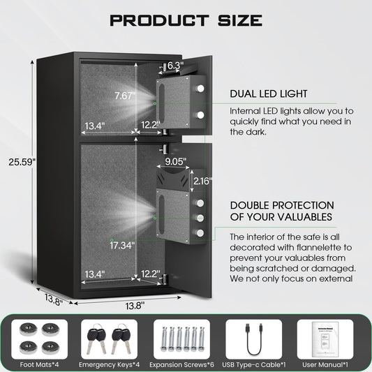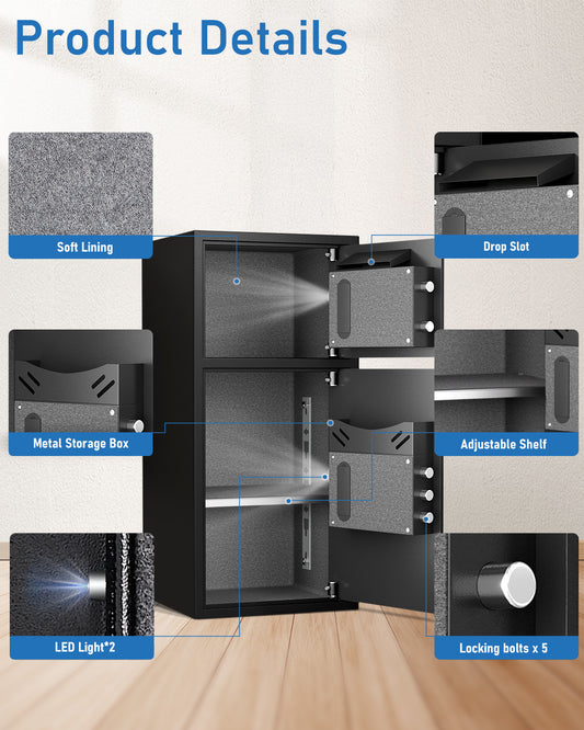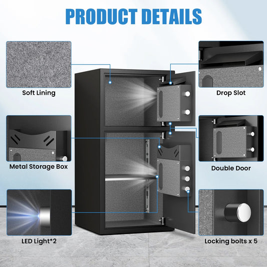 BM-KL-65W 6.0 Cu ft Large Safe Box Fireproof Waterproof, Safe with LED Light, Digital personal Safe with Deposit Slot & Dual Alarm System,Security Box for Valuables
