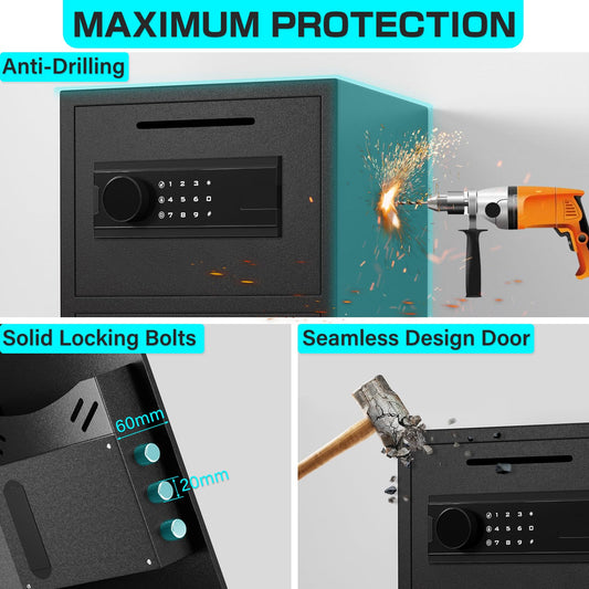 BM-K1-65 Money Safe Box with Deposit Slot & Dual Alarm System, Backlit Keypad Security Document Safe