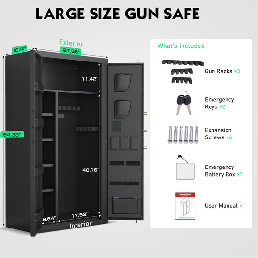 kAV AKG3-138 20-25 Gun Safe,Large Gun Safe for home,Unassembled Gun Safe with Adjustable Shelf & Gun Rack, Gun Safe for Home and Shotgun, Gun Cabinet with Mute Function & Dual Alarm