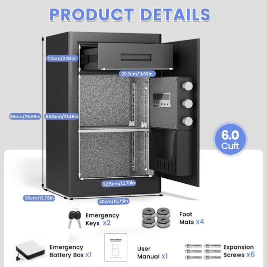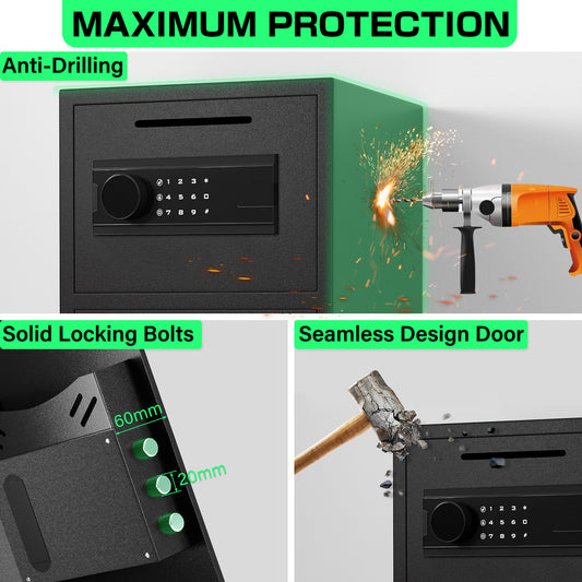 KAV 2.6 Cub Fireproof Drop Safe, Safe with Drop Slot, Drop Slot Safes with Front Load Drop Box and Digital Touch Screen Keypad, Heavy Duty Money Safe Box for Business Office Home