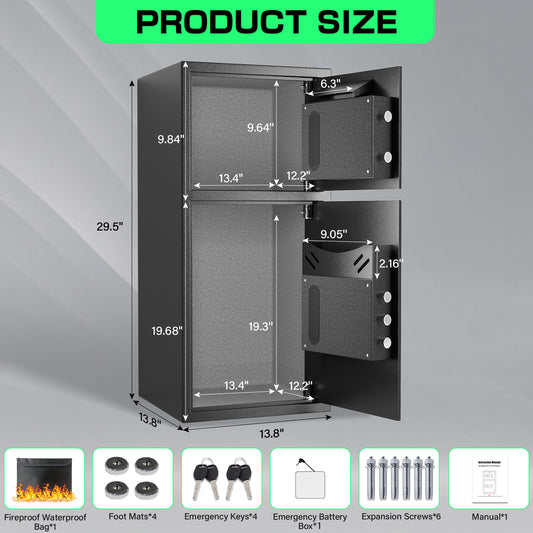 High Security Super Large-sized Safe Box with Fireproof and Waterproof Bag, 4.0 Cub Feet Safe with Electronic Password Lock,Safe with Private Inner Cabinet for Home,Office and Hotel