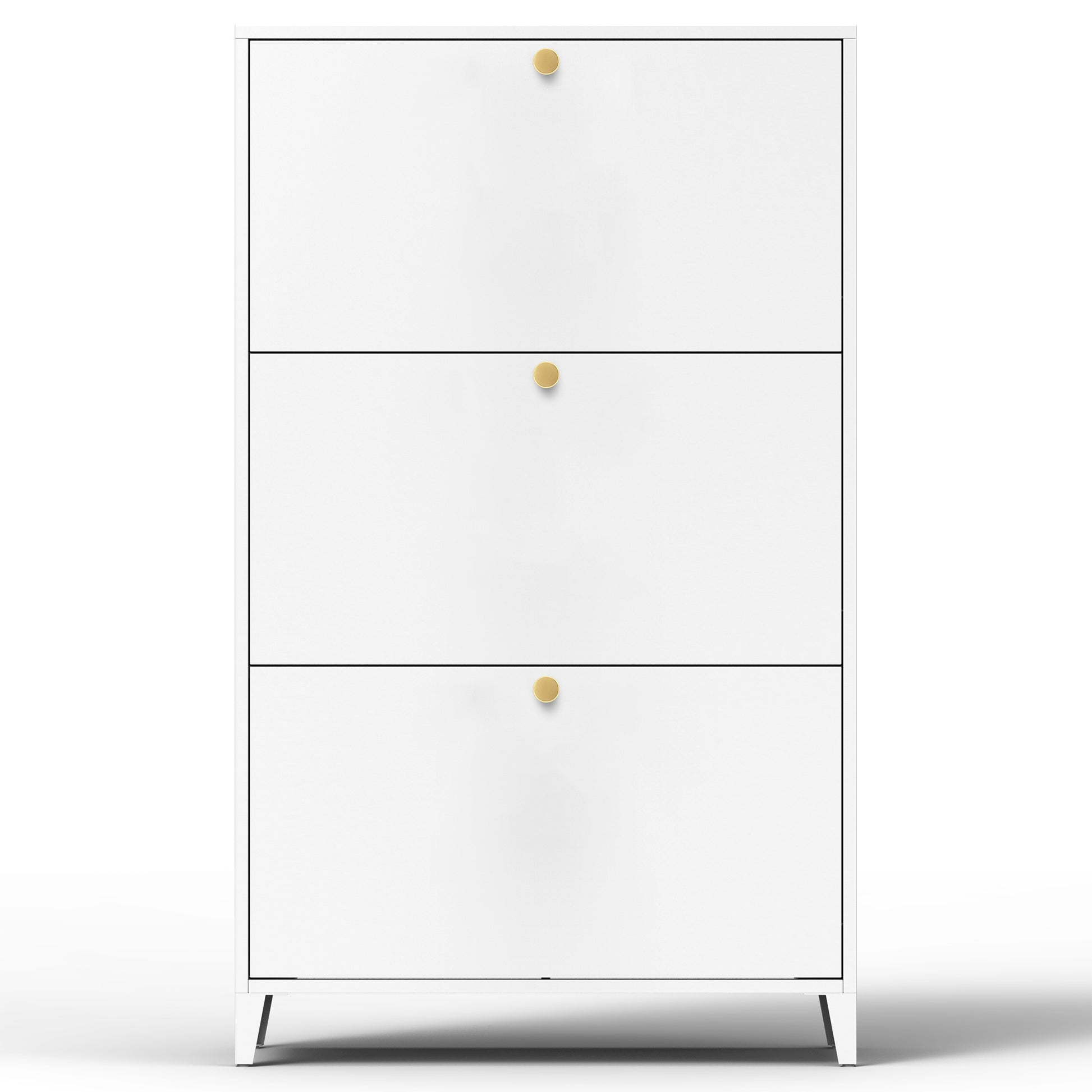 - 【Large capacity Shoe Storage】Each drawer have a partition, the 3 flip drawers shoe cabinet can store up to 15-21 pair of shoes. (Depend on the height and size of the shoes). The platform of the shoe cabinet is spacious enough to place small items at will while the bottom space can also adding pairs of shoes.