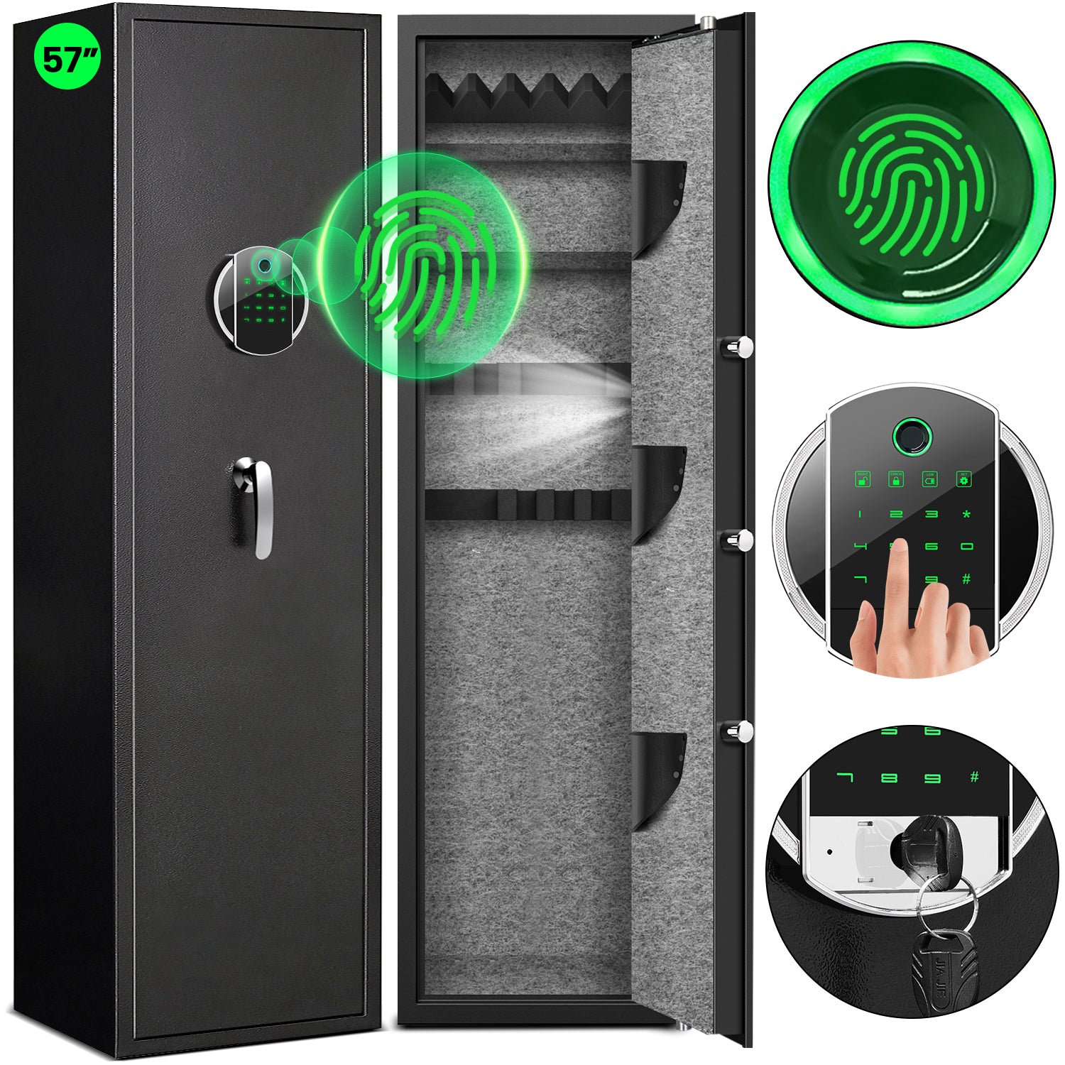 【Larger and Deeper Gun Safe for Shotguns and Pistols】External dimensions:11.81"D x 13.78"W x 57.08"H,The gun safe comes with removable shelves and adjustable gun racks.You can freely adjust the position of the shelf and gun rack according to the length of the gun.In addition to the gun rack, the gun safe also includes a pistol rack and three pistol bags, allowing storage for various types of guns. It is a suitable gun safe for home shotguns and pistols.