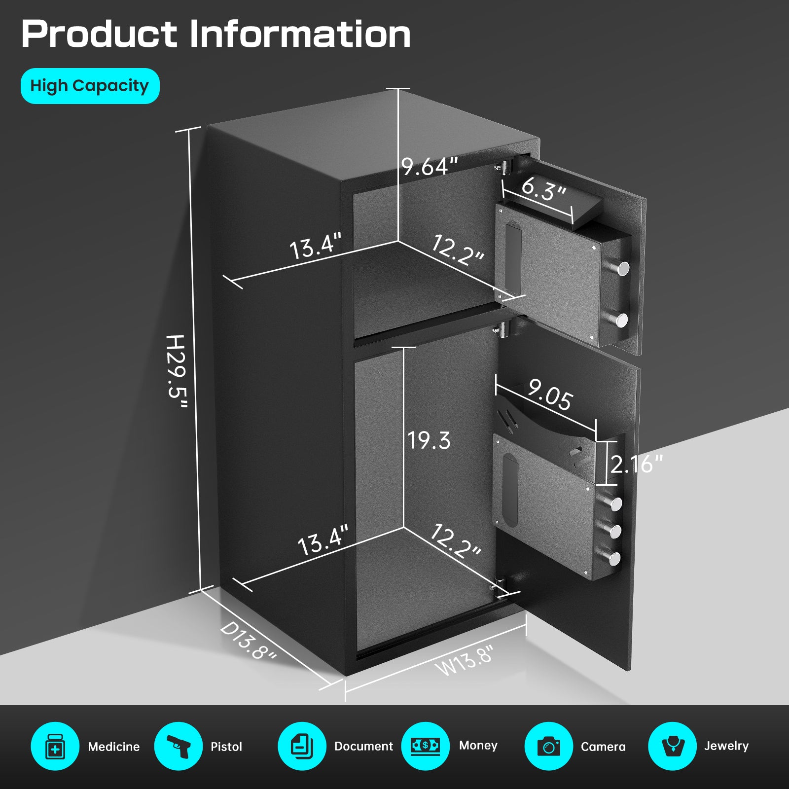 6.5 Cub Extra Large Safe, Heavey Safe Box with Double Digtal Keypad and Dual Alarm for Home Office Hotel, Large Double Door Safe Box -KM-75