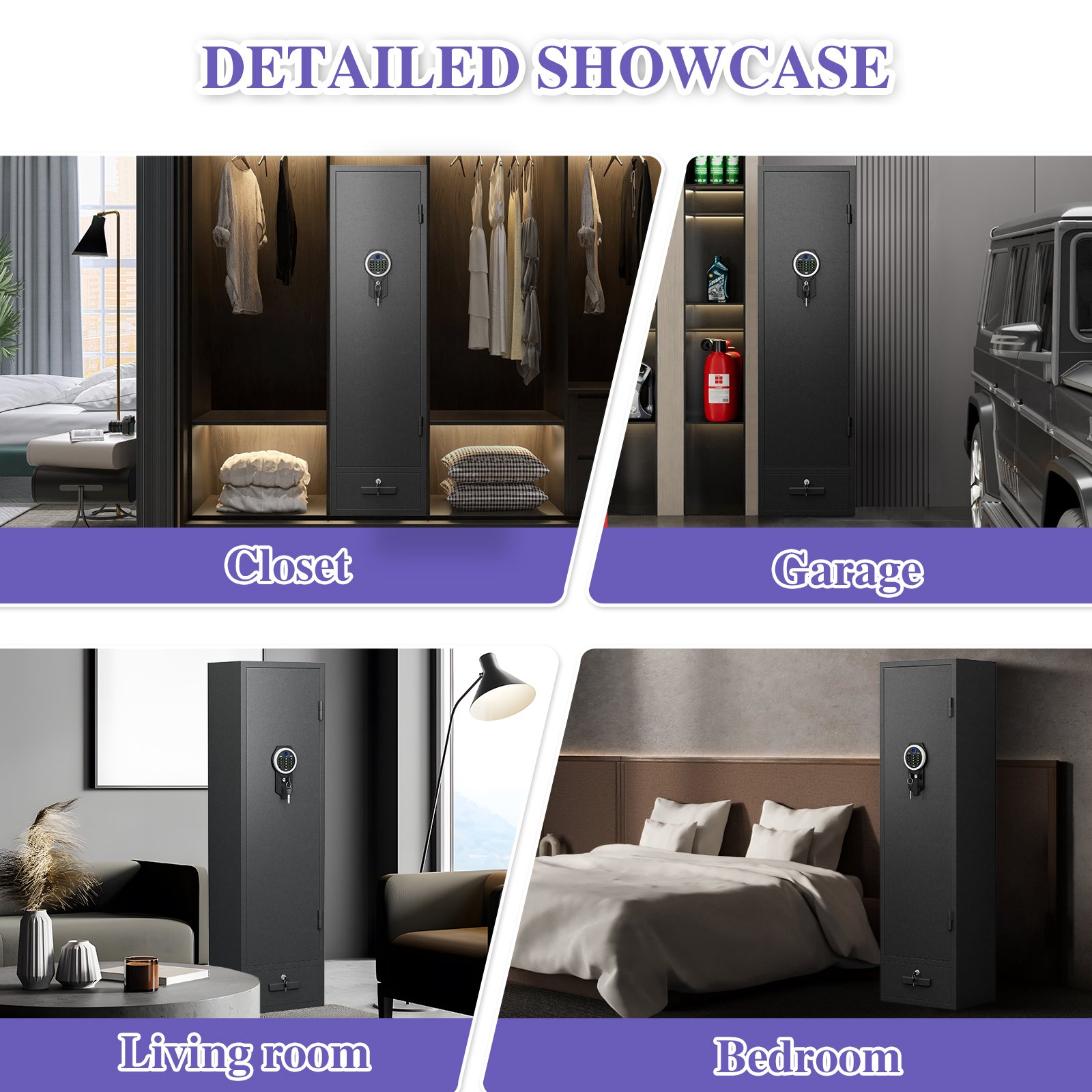 - 【Gun Safety for Rifles and Shotguns】The Riflevault rifle safe is made of mild alloy steel, which is tamper-proof and anti-prying. The unique anti-corrosion design ensures long-term use. The high-strength metal cylinder ultimately prevents the lock from being picked up. For added security, you can secure it to the ground, closet, or any other location. The lockable drawer at the bottom of the rifle safe allows for the storage of various items such as cameras, documents, jewelry, bullets, and other items according to individual needs.