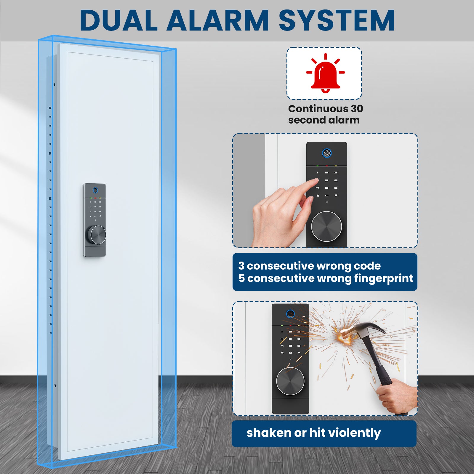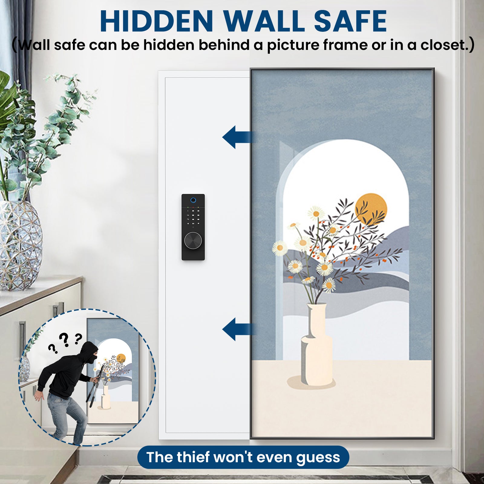 BM-135BW 53.15" In Wall Gun Safe, Wall Safe Between the Studs, Biometric Hidden Gun Safes for Pistols