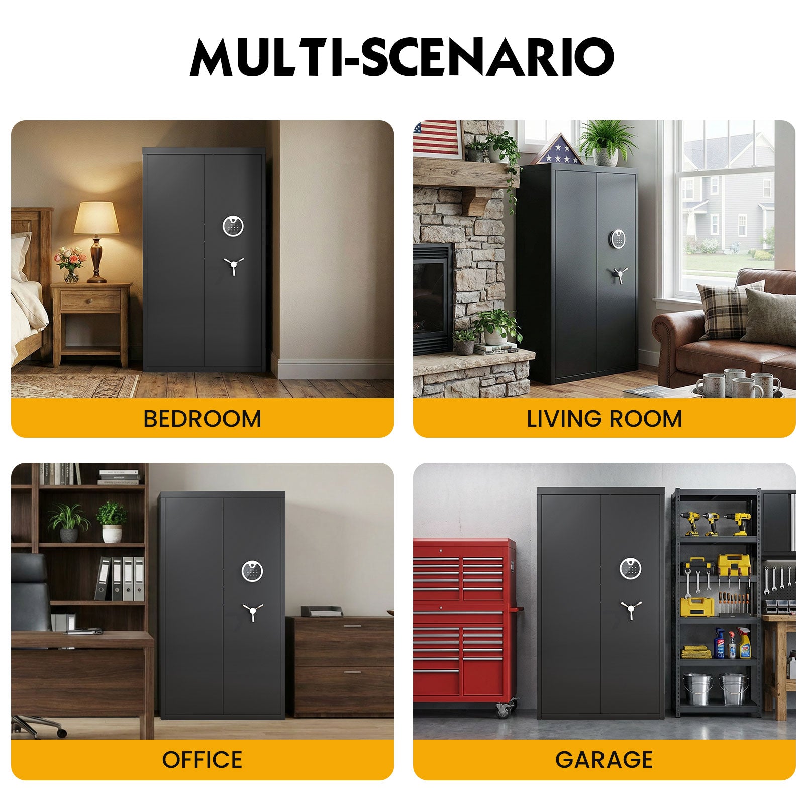 BM-AKG3-138W 30-40 Gun Fingerprint Safe, Unassembled Large Biometric Long Gun Safe with LCD Keypad & Gun Rack