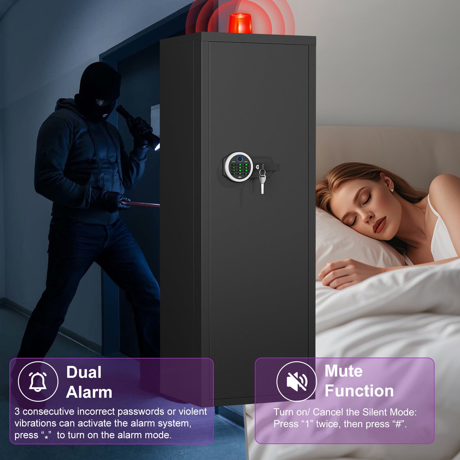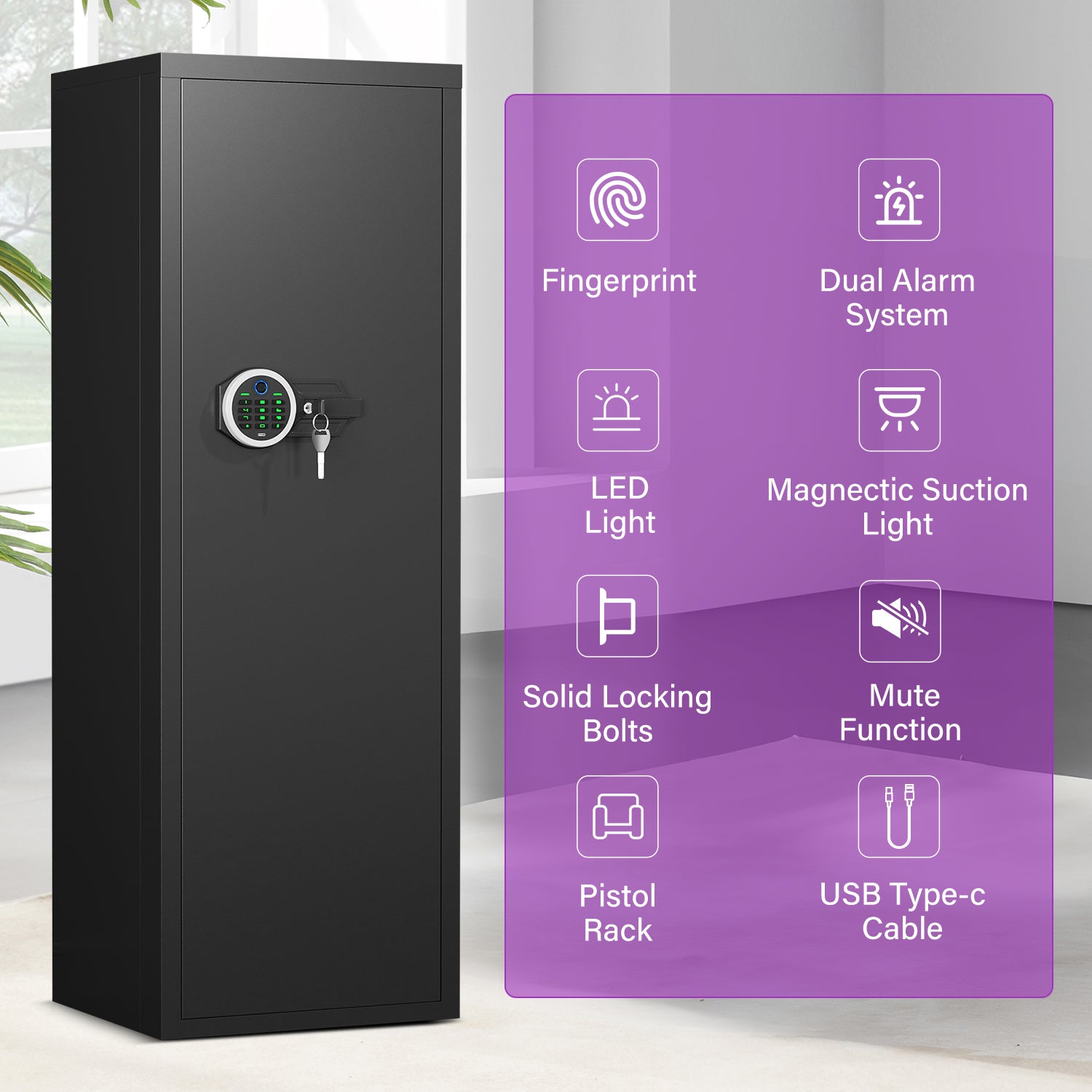 BM-AKMN-132W Biological Fingerprint Large Gun Safe with Adjustable Gun Rack, Gun Cabinet with Shelves for Home and Office