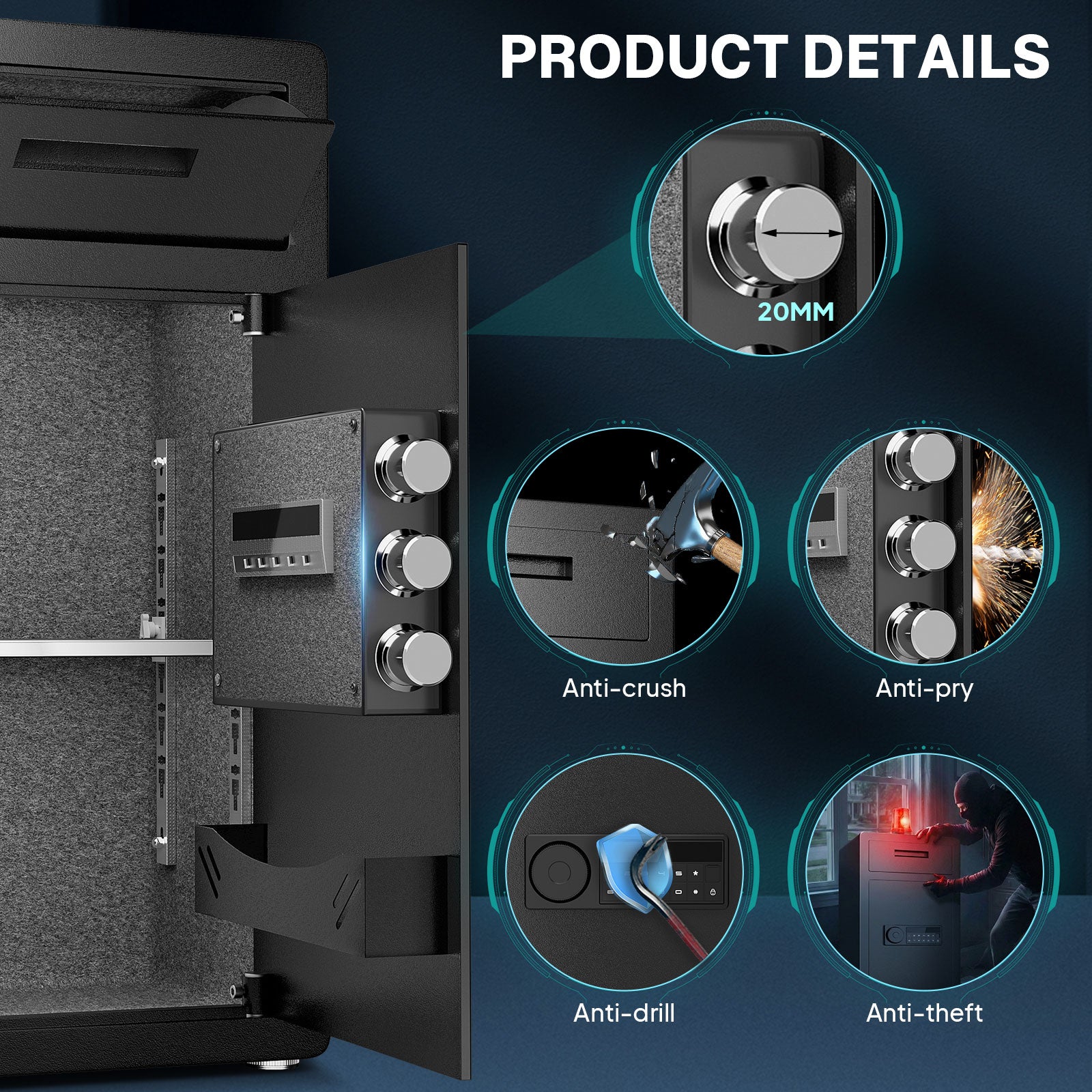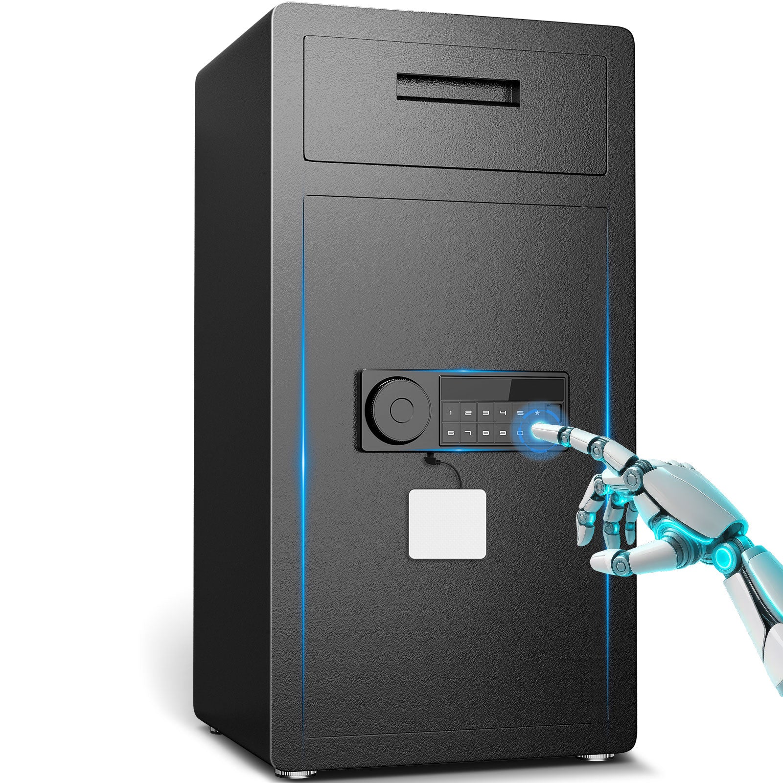 [Secure Coin Slot Safe] The Opentiny Large Coin Safe features a theft-proof design and a front-mounted coin slot for enhanced security. This design ensures your belongings, such as receipts, deposit slips, and keys, are protected from theft. A built-in handle in the coin slot allows for quick and easy insertion.[Large Business Coin Safe] This heavy-duty coin safe protects your valuables. Constructed from low-carbon alloy steel, it features a 60mm thick reinforced steel door secured with three 28mm strong bolts. An innovative micro-slit design eliminates gaps, creating a seamless, tamper-proof seal that effectively prevents damage from pry bars.[Multi-functional 2-in-1 Business Coin Safe] This large safe combines convenience and security with an interior space of up to 6.5 cubic feet. The top coin slot allows for quick insertion of cash and paper documents. Meanwhile, the spacious main compartment is ideal for storing valuables such as cell phones, iPads, and important folders, with a soft velvet lining providing gentle protection. Explore truly practical and secure business solutions.