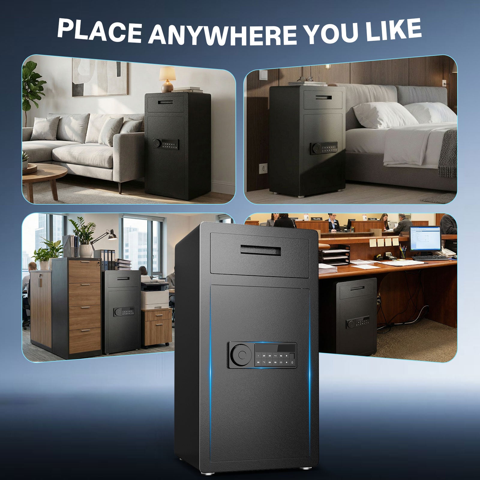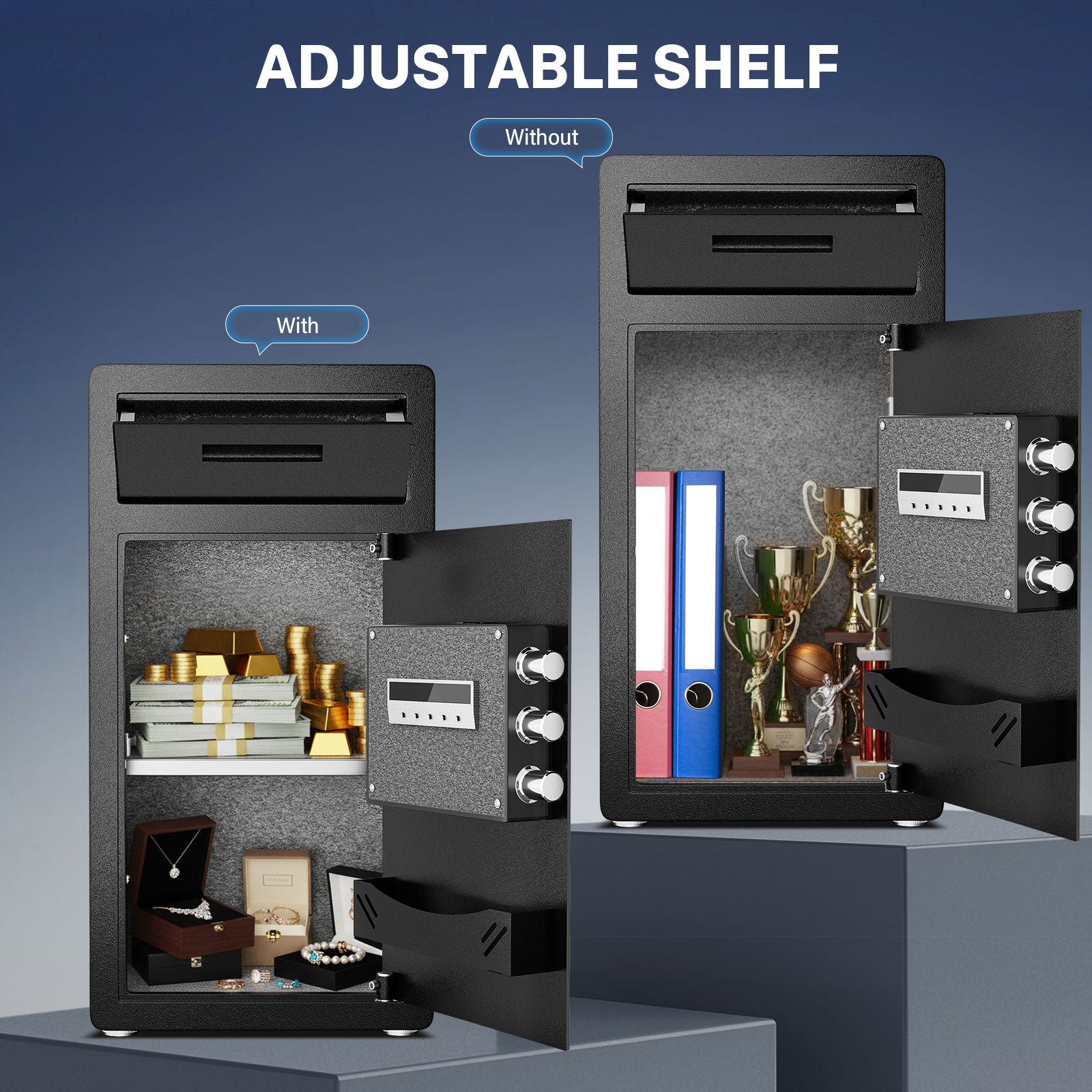 BM-K2T-75 6.5 Cub Digital Large Safe Box, Money Safe with Deposit Slot and Backlit Keypad, Home Security Box for Office, Hotel, Business