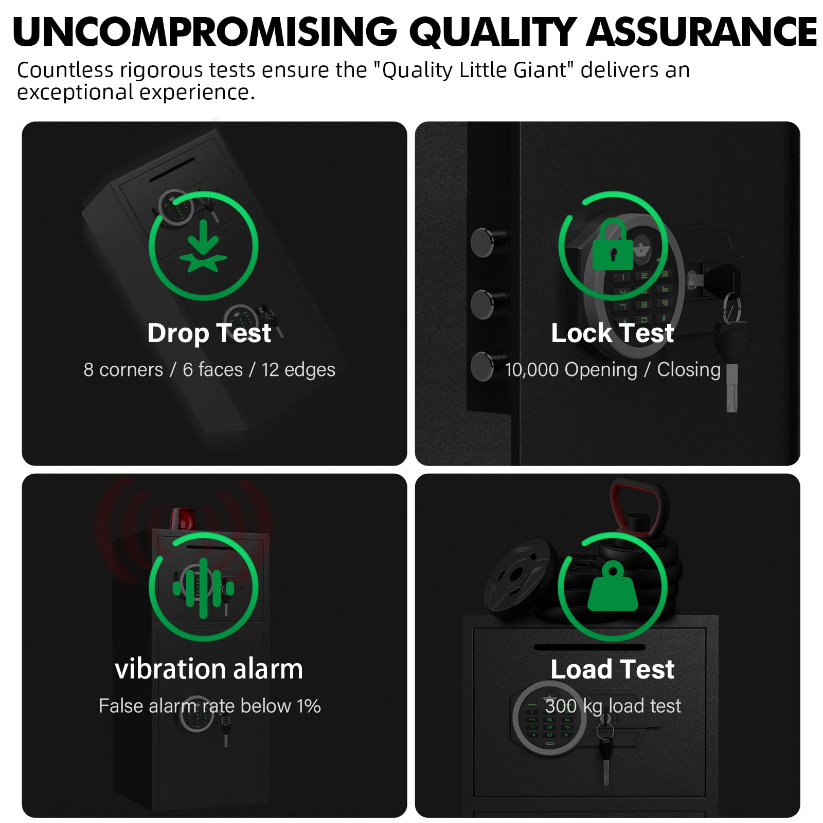 - 【Fortress Against Theft】Ultimate security awaits! This heavy-duty drop safe for business is made of high-strength alloy steel, virtually indestructible. 5 solid steel bolts secure it, with a shield-like steel door that is reinforced by 70mm thick steel. Advanced micro-gap cutting ensures a seamless, thief-proof seal. Choose this safe to fortify your valuables with an unbreakable defense.