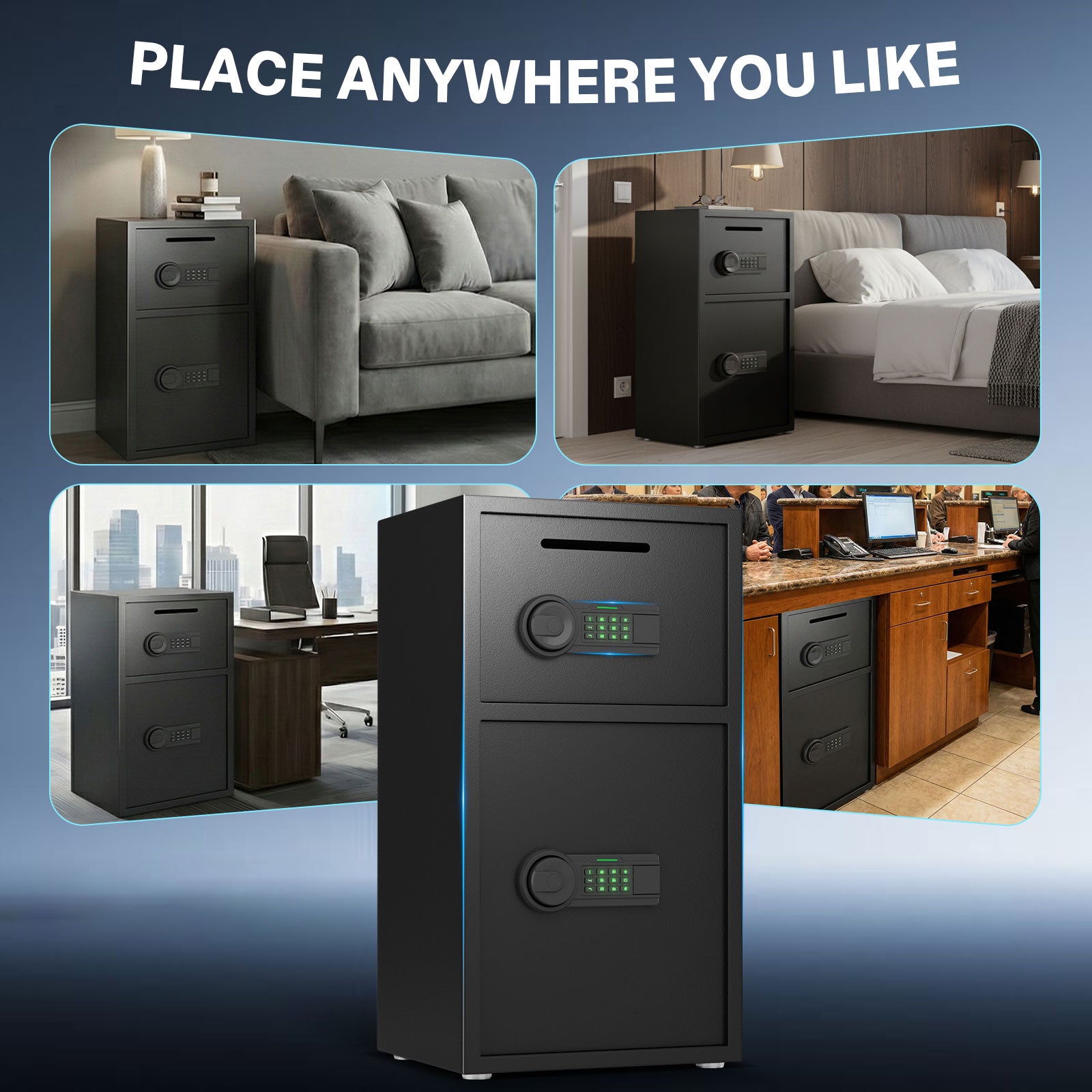 BM-KO-70D 6.3 Cu Ft Outdoor Security Safe Box with Jewelry Drawer & Hooks, Dual Alarm & Mute Function