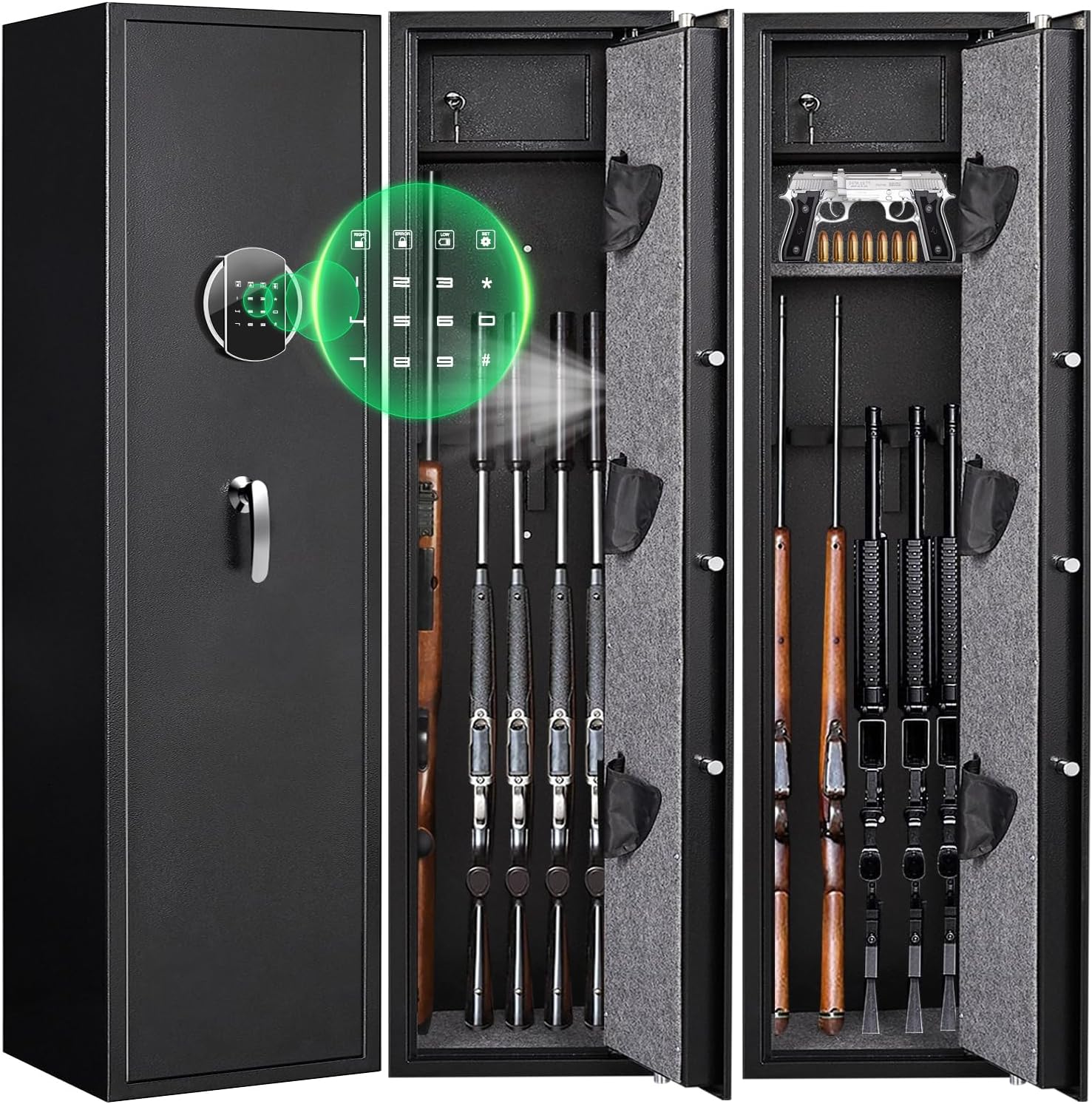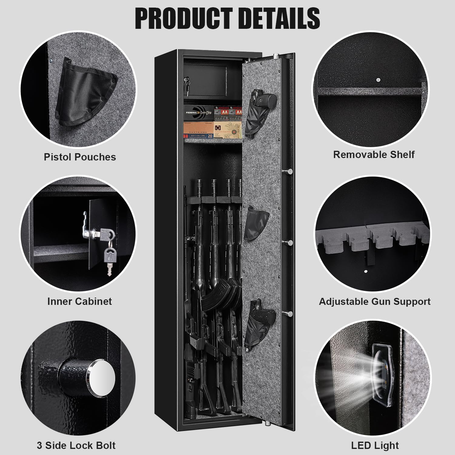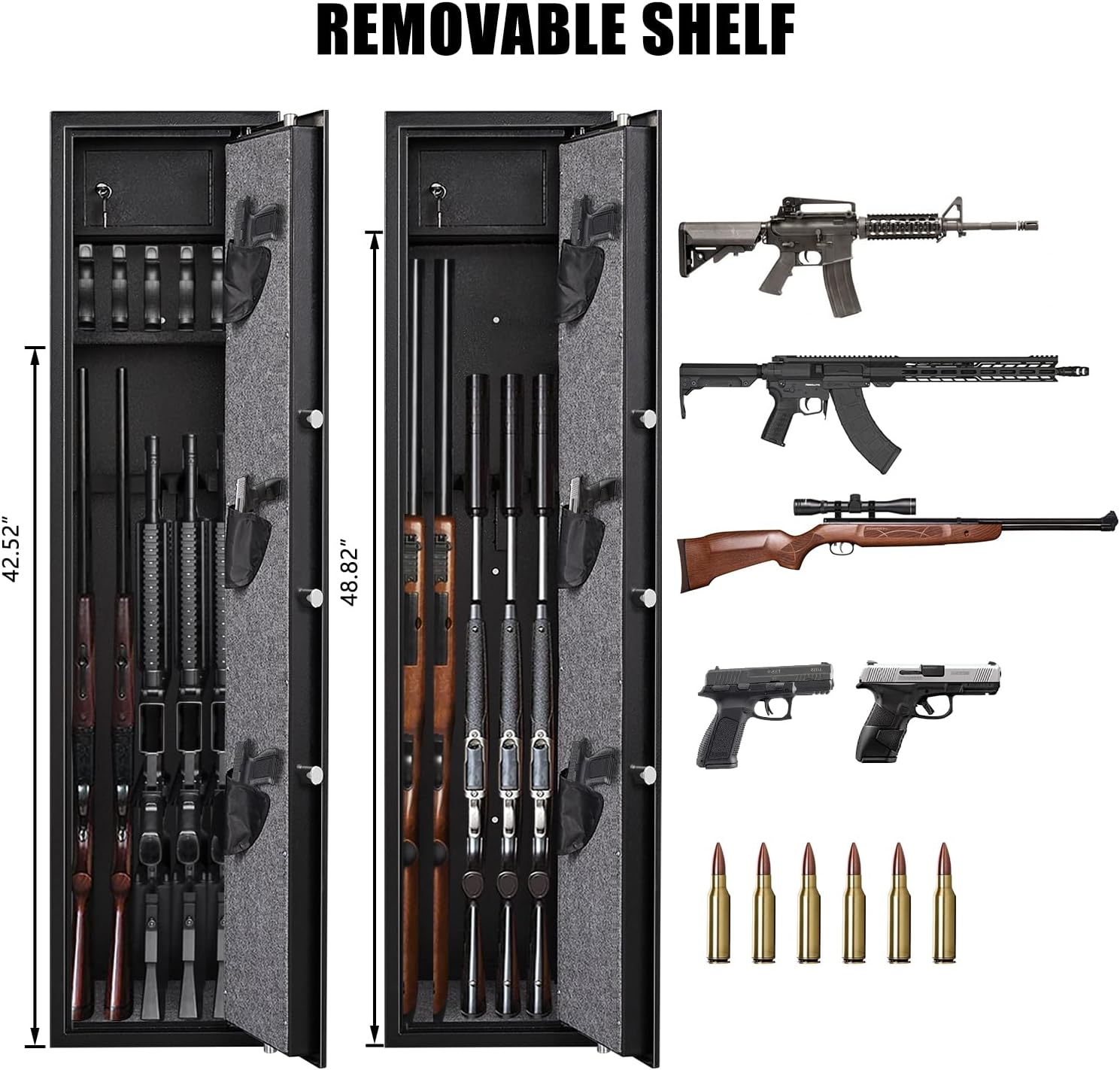 - 【SECURE AND STURDY GUN SAFE】Our rifle safe is equipped with 3 sides and 5 solid steel locking bolts (20mm diameter), a 60mm thick all-steel door plate, and complete anti-theft and anti-pry capabilities. It comes with a total of 5 pre-installed holes on the bottom and back, allowing you to securely attach it to the wall or floor as needed, thereby enhancing its anti-theft protection.