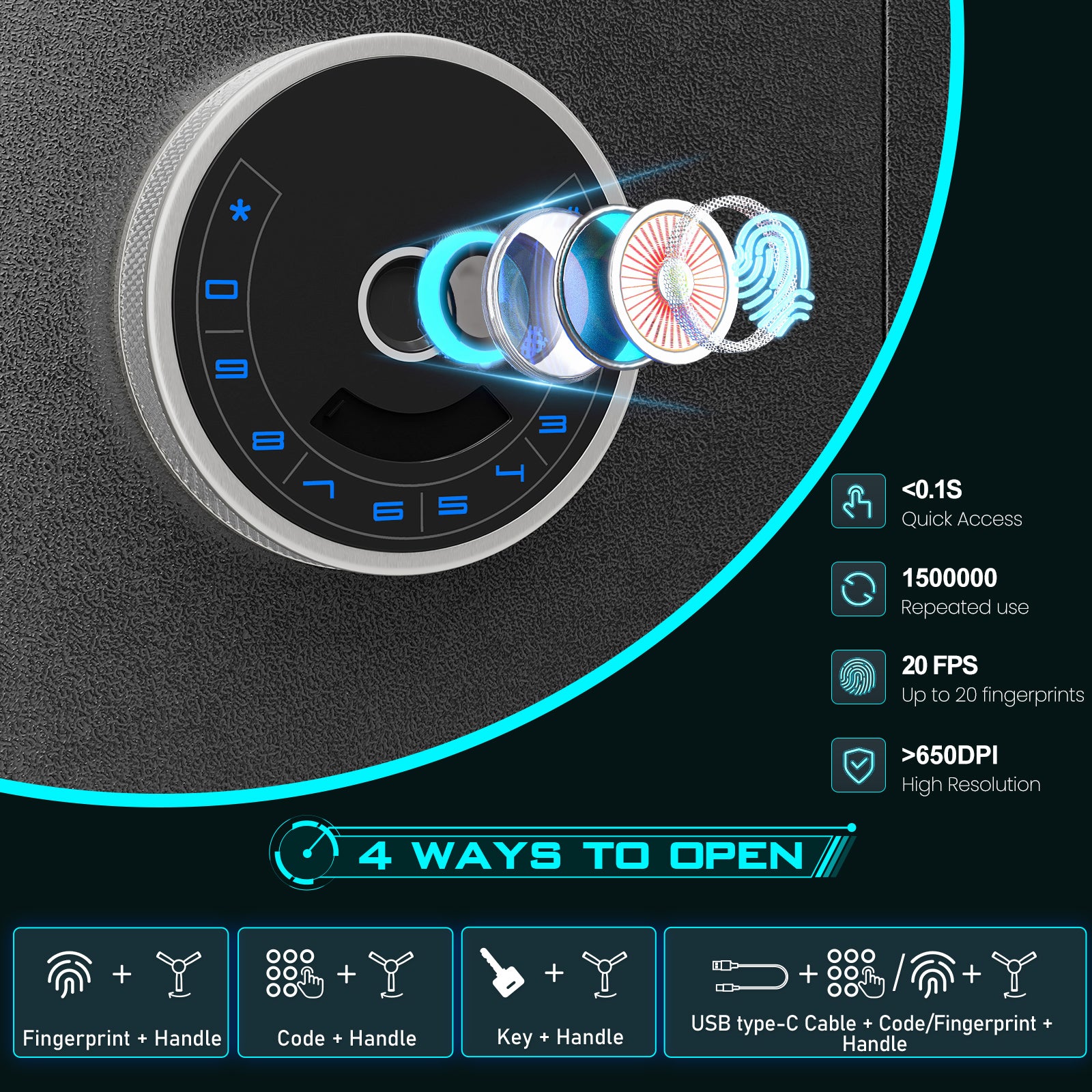 - 【HIGH-TECH,MORE INTELLIGENT】Check out this awesome rifle safe that we have - the Quick Access Biometric Gun Safes for Home Rifle and Pistols! With its semiconductor fingerprint identification system, you can unlock it in just 0.1 seconds.It can store up to 20 fingerprints, so you can grant access to trusted individuals. It's a great way to fully protect your firearms and have quick access when you need it.