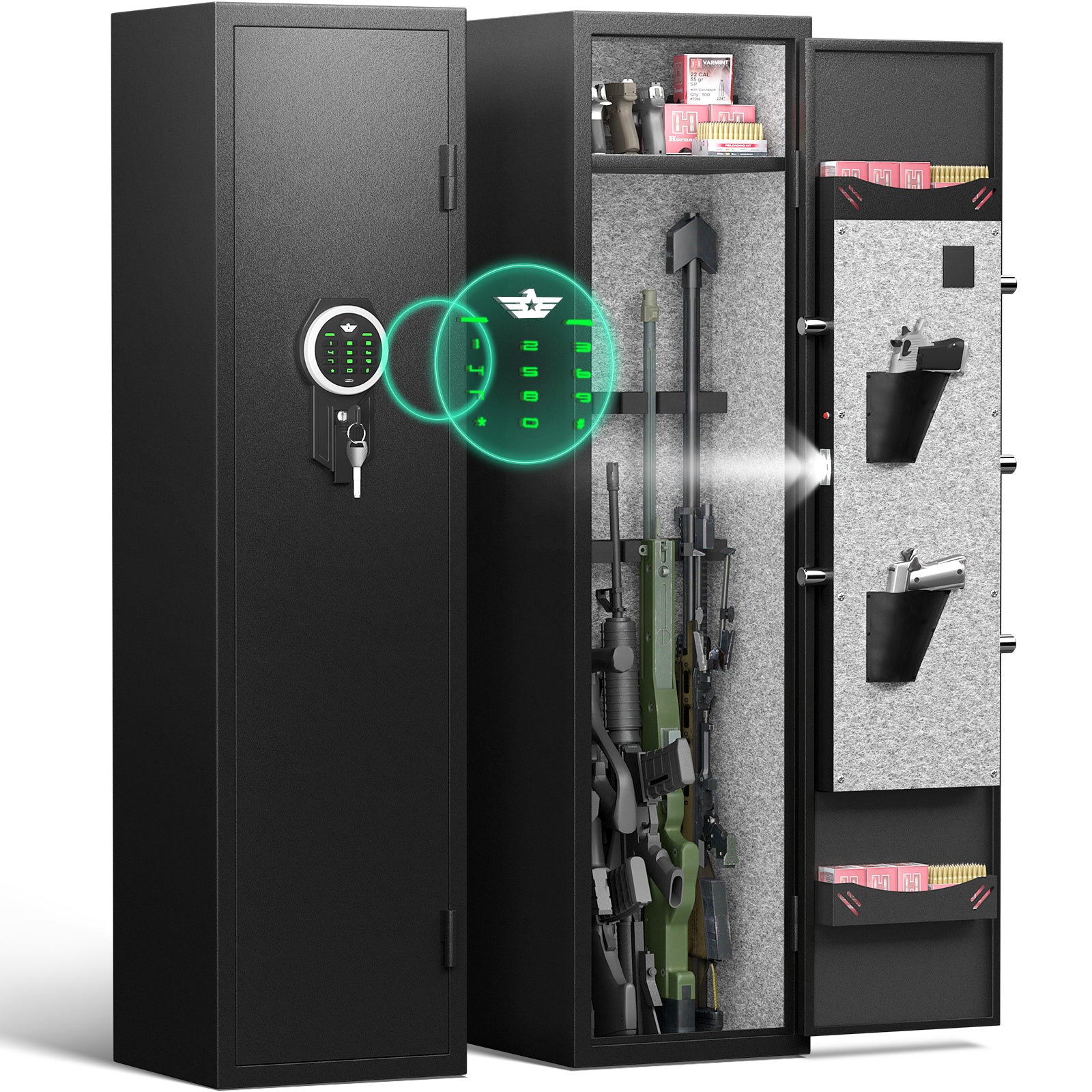 - 【Quick Access Gun Safe】Long gun safe for home rifle and shotguns allows you to program your own code for rapid firearm access during emergencies. This gun safe can store 2 sets of digital codes, providing flexibility for multiple users or backup access methods. Additionally, the code memory function ensures that your programmed codes will not be lost even if the batteries are drained, giving you peace of mind and reliable access at all times.
