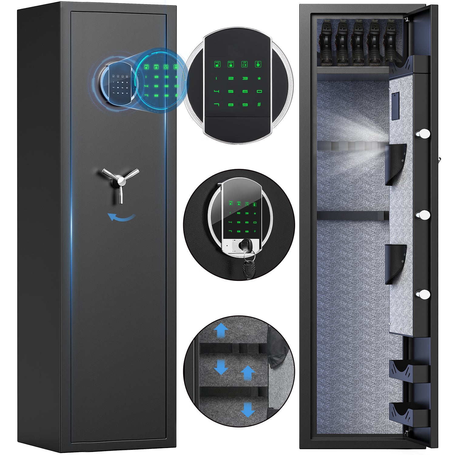 【Lock Box and Removable Storage Rack】The inside of the rifle safe has a separate lock box and a removable storage rack, the lock box can store money and valuables in your home or office. If your rifle is less than 43.3 inches long, a removable storage rack can be installed, which can store your pistol.