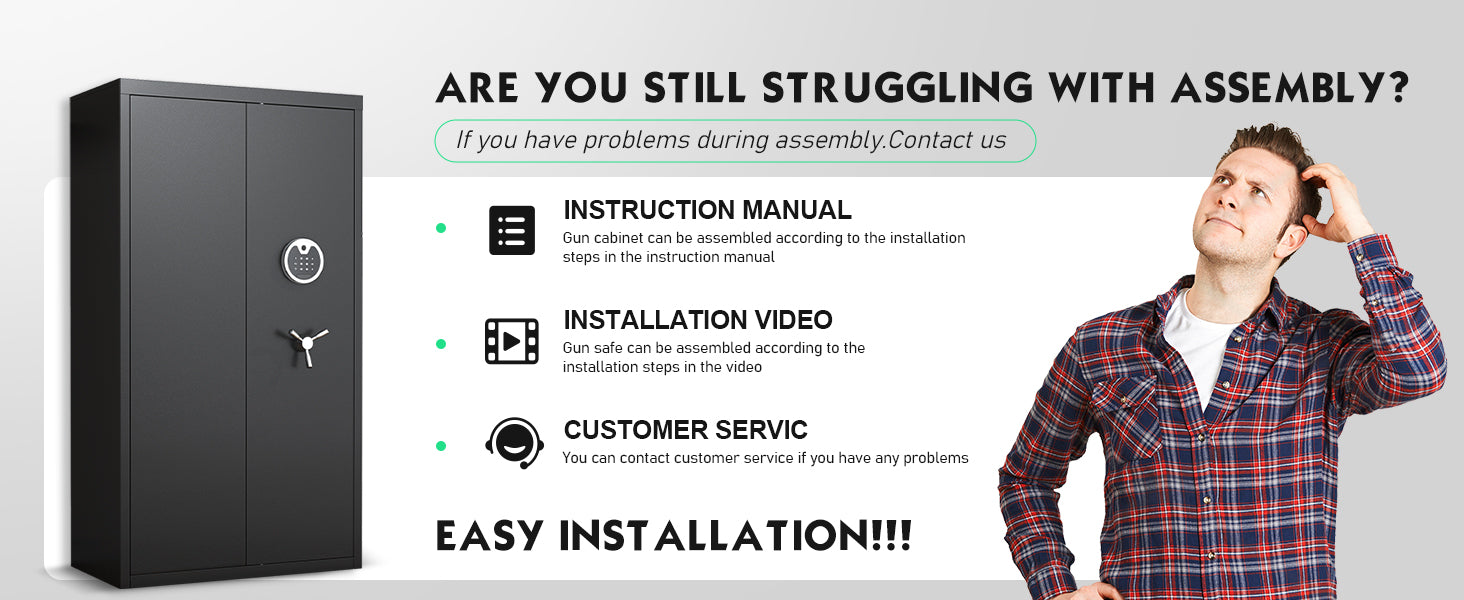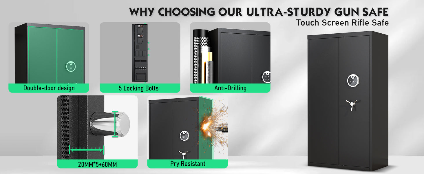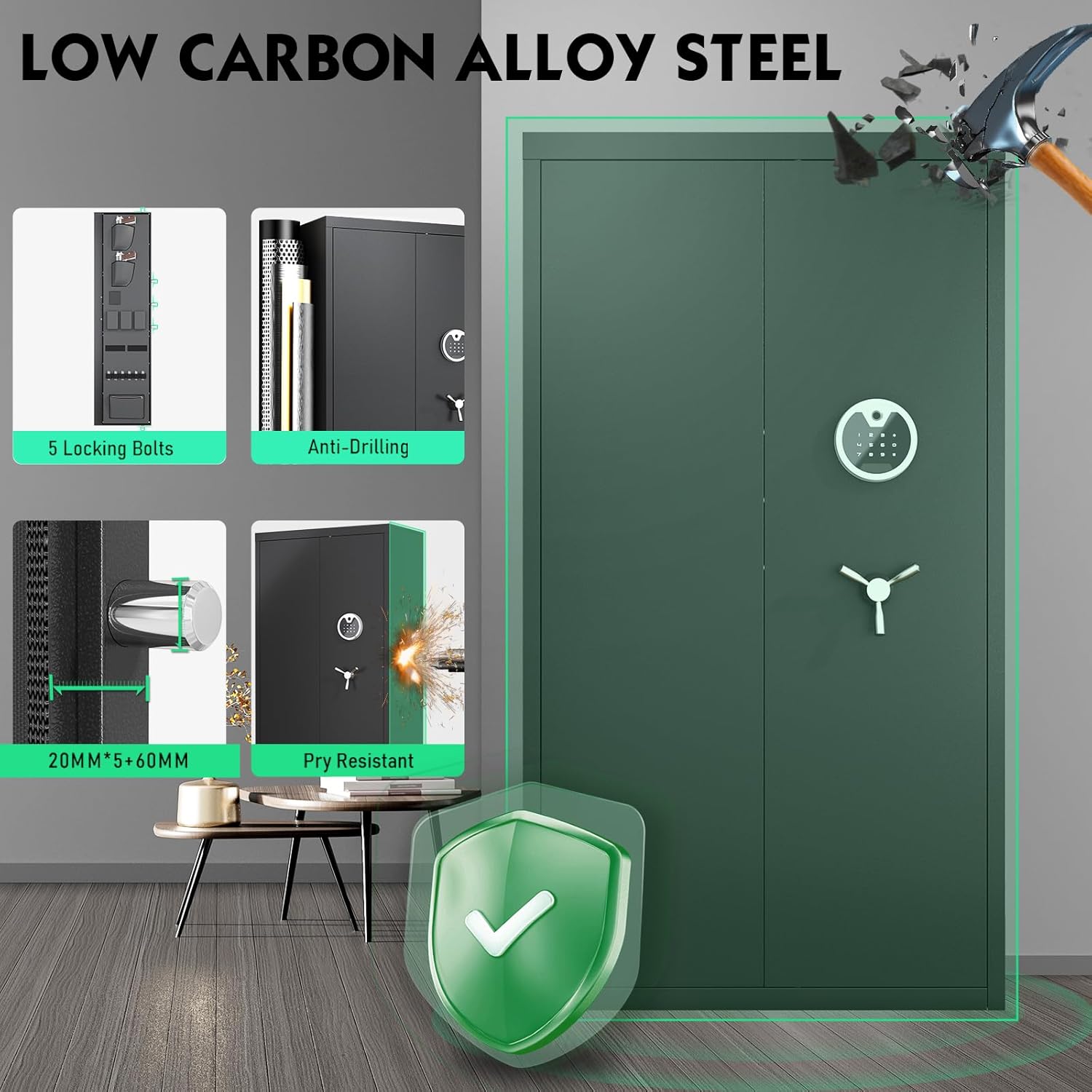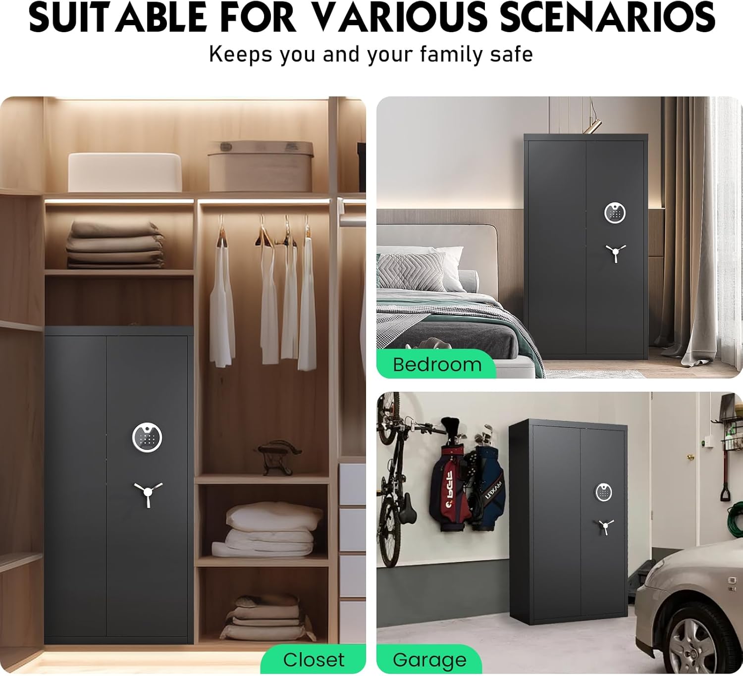 【Upgraded Double Door, Super Capacious Gun Safe】Our Gun safe features a spacious double-door design with a larger/deeper interior, easily holding ~40 pistols guns up to 50" long. It comes with 3 flexibly adjustable or removable gun racks inside, allowing you to find the perfect placement for guns of any size. A top extension slot conveniently stores extra-long guns without disassembly.