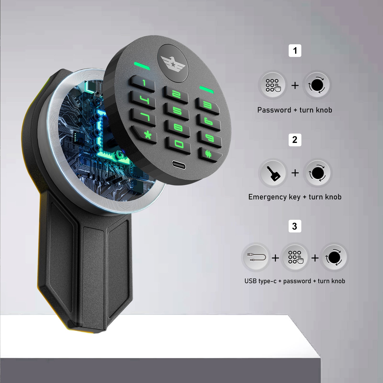 - 【Quick Access Gun Safe for Guns and Shotguns】Developed and designed in the US, our gun safe ensures rapid access to firearms during emergencies with its innovative 3D glowing digital buttons, guaranteeing error-free operation. Featuring dual password storage and a code memory function, your access remains intact even during power outages, ensuring enhanced property and privacy protection.