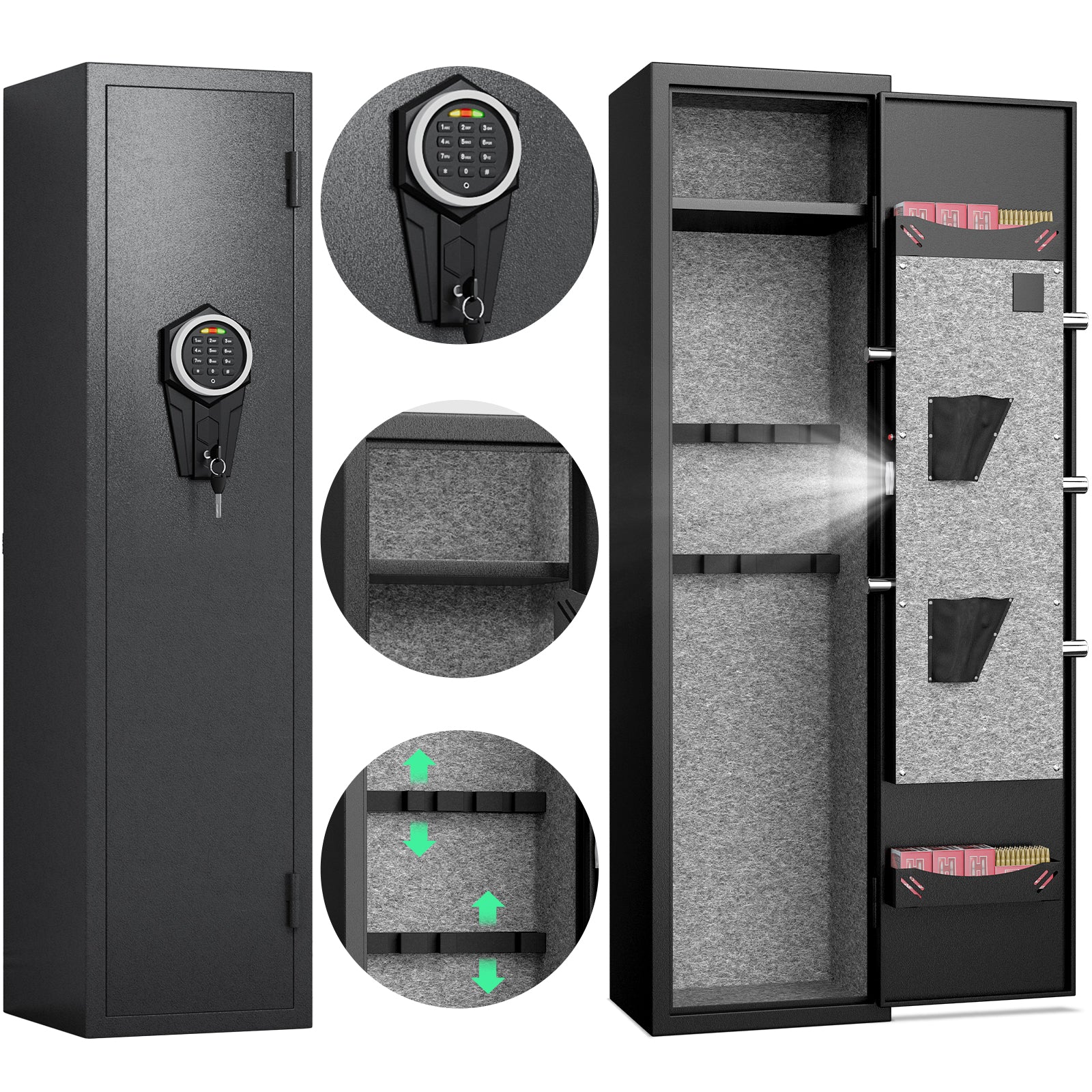 - 🔥【Solid & Secure Construction】The rifle safe is constructed with all-steel and a robust 11.81-gauge steel plate for durability. It features 5 double-sided solid locking bolts for maximum protection against tampering. The solid steel build ensures strength and reliability, while the advanced locking system adds an extra layer of security for your firearms.